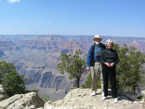 to 130 trains per day that pass through this town. The last time in Flagstaff for me was in 1957 when as a teenager I drove my own used Beatle following my parents on our family’s migration to California on US66. That was before they wrote the song about getting your kicks on Route 66. Today was Grand Canyon revisited with Russ and Ellen. We had a fantastic lunch at the best table overlooking the canyon El Tovar could offer. Lots of pictures and memories of previous visits. The day ended with BBQd rib eye steaks served with all the fixin’s at the Steeles’ rolling roadhouse.