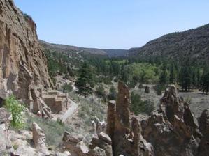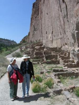 Onward then over the tops of pine and juniper covered mesas, finally diving down into Bean Valley, or for you multi-lingual types, into Frijoles Valley where the main visitor center is located. After visiting the shops and a slide show we were ready for the trail that would lead us up the