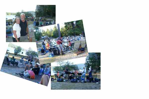 Tonight the tradition continued and all felt privileged to be included in the congenial group of eaters and drinkers that usually number somewhere north of one hundred. People come with food and drink and kids and dogs and chairs and … , you get the picture. Everything is laid out on picnic tables for everyone to pile their plates high. In addition to boating, swimming, and volleyball, there is usually at least one band that provides entertainment adding to the spontaneous guitar or two popping up here and there with a singer or two joining in. Tonight we had two fine local bands that kept the spirits up and flowing until well after dark.