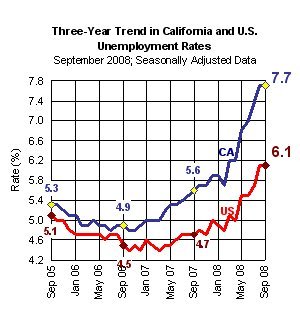 CaunemploymentSan Diego Union Tribune cites (here) that the consumer-driven recession has started in California and nationwide.
