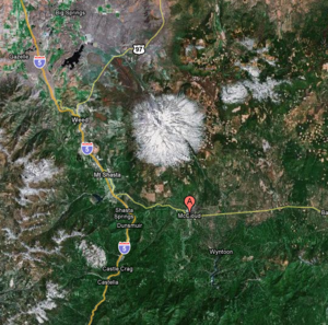 Last Friday Jo Ann and I put the cats in solitary, jumped into the Cherokee, and were on our way to discover McCloud. This town of about 1,600 sits on Highway 89 less than ten miles east of where it joins I-5. The dominant landscape feature of the surrounding territory is Mt. Shasta whose 14,000+ft peak looms more than two miles above the town. We pulled into McCloud about 3pm as the sun was already dipping below the tall pines that are by far the most numerous residents of that country.