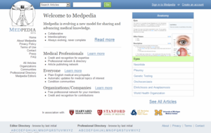 Today Oogalabs launched Medpedia.com, its new web medical information website. Medpedia promises to be for accessing medical information what Wikipedia is for web-based information. Medpedia is designed to be used by both lay people and medical professionals, with content provided and edited only by medical professionals. So, if you got a boo-boo or want to find out about a boo-boo, put Medpedia in favorites and you’re good to go any time you have a question.