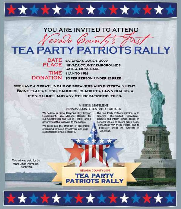 Hundreds of thousands of us were designated “right wing extremists” by our federal government on 15 April 2009. If you missed out, tomorrow is your chance to join your friends and neighbors at the Nevada County Fairgrounds and set the matter right once and for all. The appellation was bestowed on us by Ms Napolitano and her Department of Homeland Security. And as usual with such left-wing bête noire, it was promptly buried by their obedient MSM. I posted (here) on Napolitano’s infamous report that was not supposed to be seen by the plain folks in the hinterlands, most certainly not by us right wing extremists. Ollie North wrote the definitive response, to which I as a combat arms veteran subscribe. Thanks to an RR reader, you can read it here (below the poster), and meditate upon it on the eve of our next gathering tomorrow. Hope to see you there.