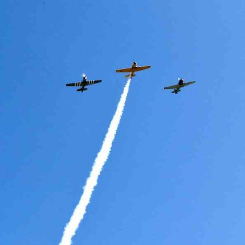 It was interesting watching how smoothly Jim caught up with the father-son duo and pulled us tight under the left wing of our leader Ken Dwelle flying ‘TinkerToy’ with USAF markings. Ken led us in the LoP flyovers and then announced that while down there, he had promised the folks in Auburn to do a flyover or two for them. So that was our Lucky Strike extra for the morning.