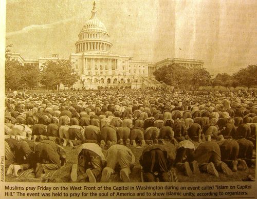 “Day of Islamic Unity” – Certain segments of Muslims in America are now gathering to “pray for the soul of America” and demonstrate their unity on the Capitol Mall in Washington. This week’s demonstration was organized by the leading terrorist defense lawyer in the land. The lame MSM did their part to limit coverage of this sea change in Muslim attitudes that some Islamic organizations in the country did not endorse. Airing their reasons for staying away would have been edifying. It requires naïveté in the extreme to believe that these folks do not have the same aims as their brethren already firmly entrenched in their settlement of Europe. Their website proclaims “Our Time Has Come” – for what? I ask.