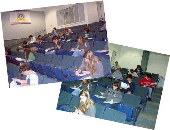 Today the fourth annual merit scholarship TechTest was given in the Science Lecture Hall of Nevada Union High School. The test was administered by NUHS physics teacher Mr John McDaniel who also heads the TechTest academic committee. I visited the lecture hall this morning and took the nearby pictures. Mr McDaniel told me that this year 24 students from Nevada County were competing for the scholarships which will total a little north of $15,000.