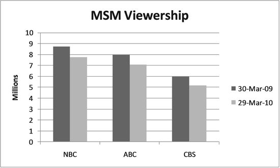 MSM nightly news viewership is down 14% in the last year. But the sad news is that about 20 million Americans are still being fed a steady diet of bull pucky every night. H/T to RR reader.