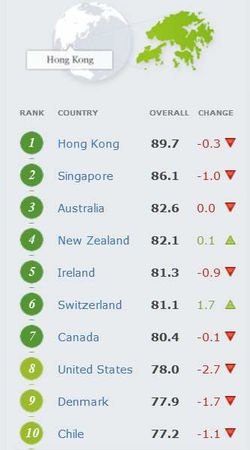 Hi, I’m George Rebane, looking a little askance at the numbers. The Economic Freedom Index or EFI is compiled for 179 countries. The index itself is made up of ten components covering such factors as Business Freedom, Government Spending, Investment Freedom, Property Rights, and Labor Freedom. The EFI ranges from 100 down to zero. The top spot still belongs to Hong Kong with an EFI of 89.7 which is solidly in the ‘Free’ group of countries with scores 80 and above.