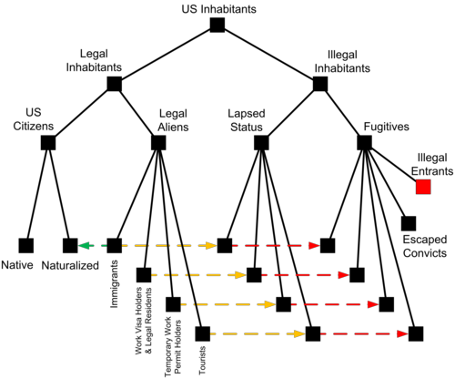 If the immigrant screws up and does not follow said process, then his legal immigration status lapses and he becomes an illegal immigrant. If this occurs unintentionally, then there is usually recourse to being restored to legal status. If it occurs intentionally or later becomes intentional and the immigrant avoids the authorities, then he becomes a fugitive while in this country. That is an illegal immigrant who also belongs to the super-class of illegal alien.