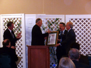 Last night we attended a reception for re-elected Assemblyman Dan Logue that was held at the Southridge Event Center in Sutter. The gathering also honored retiring State Senator Sam Aanestad for his years of service. Sam was presented with a large commemorative resolution that will now grace the wall of his office. But what made the evening special was that Sam, who knows Karl Rove, told Rove of all the good work that Dan has done in his short time in Sacramento.