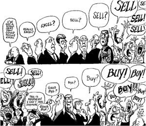 As a long time investor in the stock and bond markets, I and my friends of similar persuasion always smile at the naifs who write such drivel.  If the investors are selling or buying, who the hell are they selling to or buying from? The local public storage facility, United Van Lines, inmates of the nearby mental hospital, who?