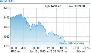 Has everyone been watching the goings on in gold and other precious metals lately? Today the price of one ounce plummeted another 9.4%, making the price drop of that barbaric relic in the last few trading days to be the biggest in thirty years. Astute observers tell us that Big Money (central banks, institutions, …) even margined retail investors have been selling to deleverage and clear their books. Cyprus is held up as a sovereign nation poster child in this mad rush to divest.