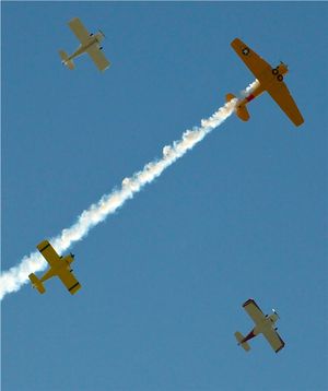 Pioneer aviator Lyman Gilmore was celebrated yesterday at the school of his name. There was a big ceremony for students and speakers to recognize Nevada County’s contribution to early aviation. The event included an organized overflight by a large group of local aviators, some of them with national reputations. The flight was comprised of 18 private aircraft led by Jim Booth in his now familiar yellow AT-6 warbird followed in close formation by three members of the Ryder Flight. Getting all those airplanes in the air, oriented and lined up, and then back on the ground on a very windy day was a grand feat of organization and heads up piloting by all participants – H/T to our own Bob Hobert (Ryder Flight leader and RR reader, who also sent me the pic) for organizing and getting everyone briefed and debriefed. I was happy to be invited by Jim to again fly in the rear seat of the T-6.