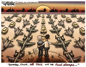In the meantime, under Obama’s leadership we are beating our swords into food stamps. Please take time to review your ‘Duck and Cover’ drills.