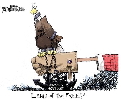 [update] More on Obama’s strangling our liberties and economy, and California’s secure place as America’s least free state in terms of personal liberties and business freedoms (more here). McKee’s cartoon says it best.