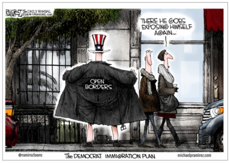 Two of my favorite cartoonists – one from either side of the aisle – have made recent contributions worth noting. Ramirez makes an excellent statement about America, with its porous borders, exposing itself to all kinds of ongoing socio-economic insults. (H/T to reader)