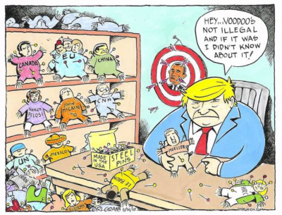 Today’s contribution from our cartoonist RL Crabb, filched from the pages of the 14aug18 Union, is a view from the purported mid-road vantage that appears to suffer a bit from Bob’s ongoing bout with TDS. I wonder what pinned dolls he would have pictured with Obama had he been so inclined.
