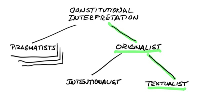 [Addendum] Constitutional interpretation is a much debated subject. A commenter brought up his understanding of my use of the such interpretations. According to my readings, I view some of the main interpretations within the following taxonomy (my own preference is shown in green).