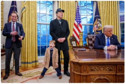 I want to end with the photo showing Trump sitting calmly at his Resolute Desk while Musk stands nearby with his 4-year-old son explaining some recent DOGE initiative to the press assembled in the Oval Office. The Dems claim this to be a picture showing historical presidential weakness, and confirming that it is Musk who is really in charge. To the rest of us it is a display of comfortable and confident power. The President sitting at his desk quite sanguine about letting one of his lieutenants have a moment in the sun while his position in the administration’s leadership hierarchy is confirmed by the top gun, known by the world to always be in charge of all that he surveys – he need not flaunt anything in the manner of weaker leaders.